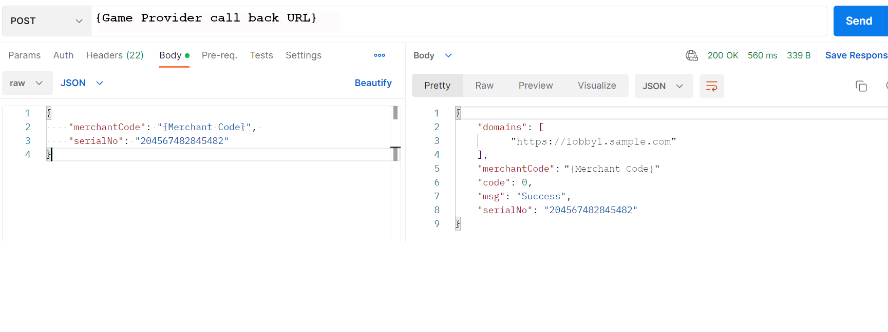 Usage: Merchant will provide this request for Game provider to authenticate the session.